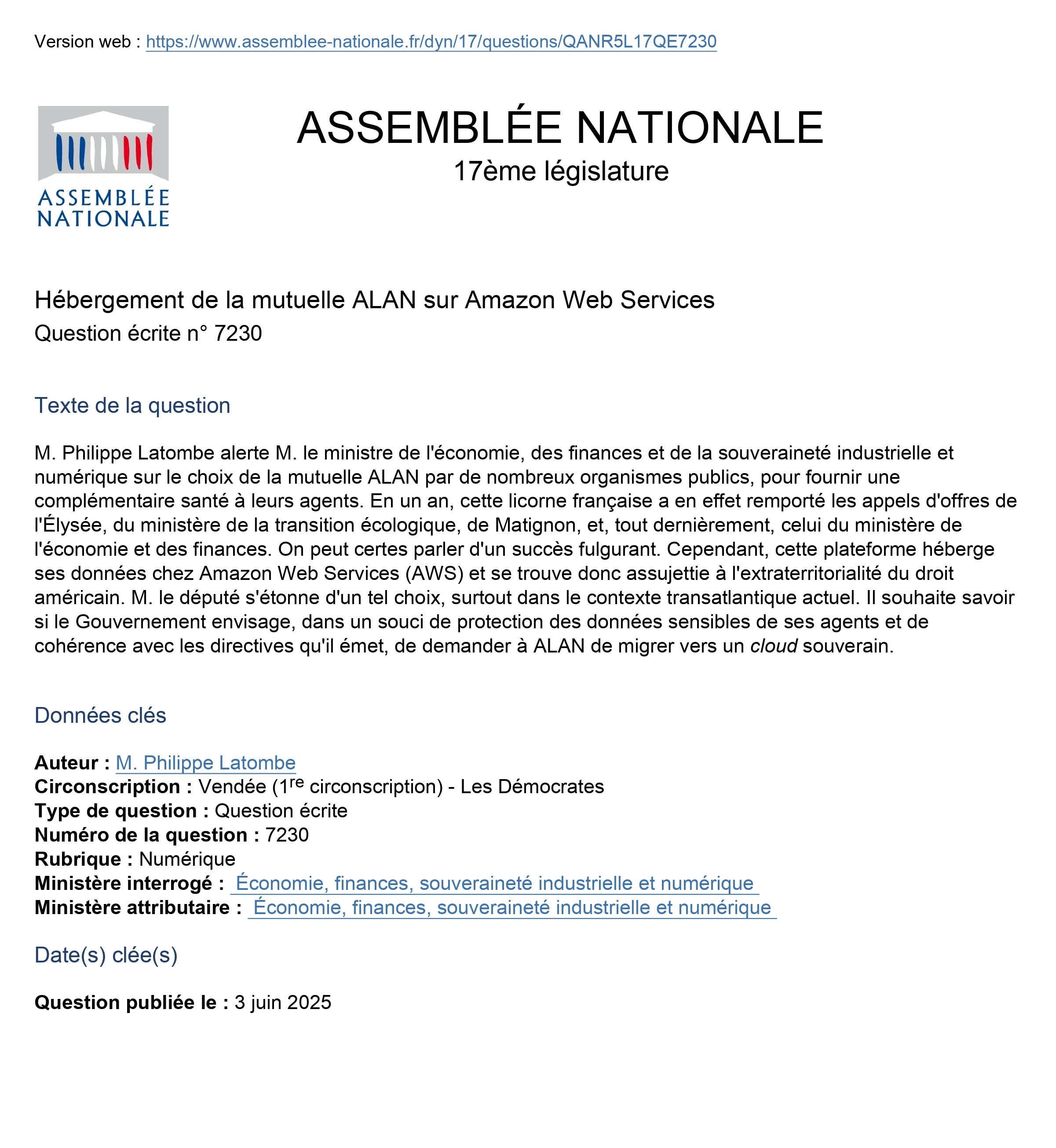 JJUG :07/06/2025 09:07:33 Décidément les services souverains de l'Etat et les services "périphériques", éventuellement attachés à leurs personnels, sont sont loin de l'exemplarité dont on peut rêver pour engager réellement la reconquête de notre souveraineté numérique.